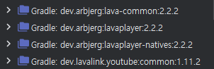 이전 환경설정 편에서 작성한 JDA 버전을 올려주면서 lavaplayer와 youtube-source를 추가해줄 것이다.
