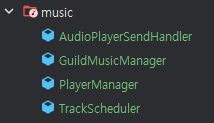GuildMusicManager : 서버(길드)별로 플레이어와 트랙 관리를 담당